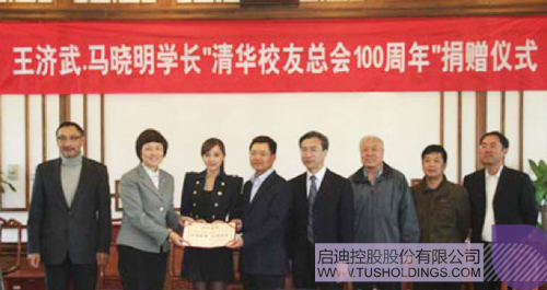 2013年4月24日,啟迪控股時任總裁王濟武及夫人馬曉明獻禮清華校友總會成立100周年,捐贈300萬元現金及180萬辦公場所裝修費用。王濟武馬曉明夫婦還曾先后捐贈清華大學幼兒園和清華附小的建設,還為《水木清華》刊物捐贈發展資金。