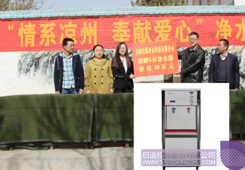 2015年4月16日, “情系涼州,奉獻愛心” 亞都凈水向武威市涼州區部分貧困農村學校捐贈5臺亞都YD-RO50A-SH凈水器。2016年9月13日,蘇州亞都凈水通過江蘇省教育基金會向兩所院校定向捐贈了51臺價值150多萬元的“亞都”校園專用直飲水設備,為校園教職員工提供安全健康的飲水保障。