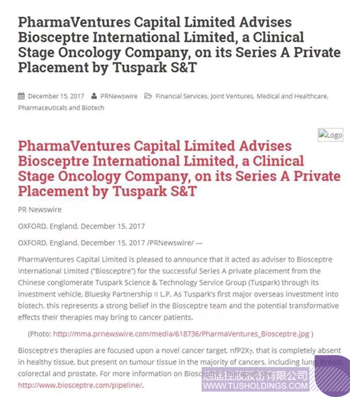 Kltv報道:2017年12月14日,英格蘭Biosceptre已獲得了由中國啟迪科服集團主導的投資,并通過投資工具Bluesky Partnership II LP 完成交易。